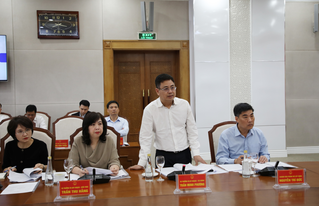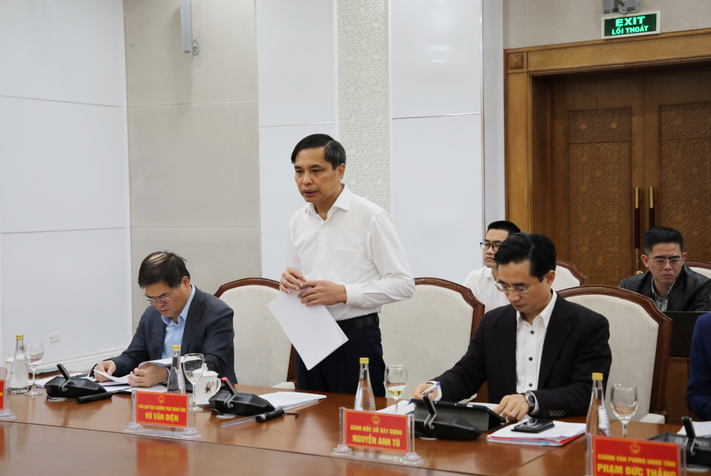 Thành viên Đoàn công tác của Bộ Xây dựng phát biểu tại cuộc làm việc.