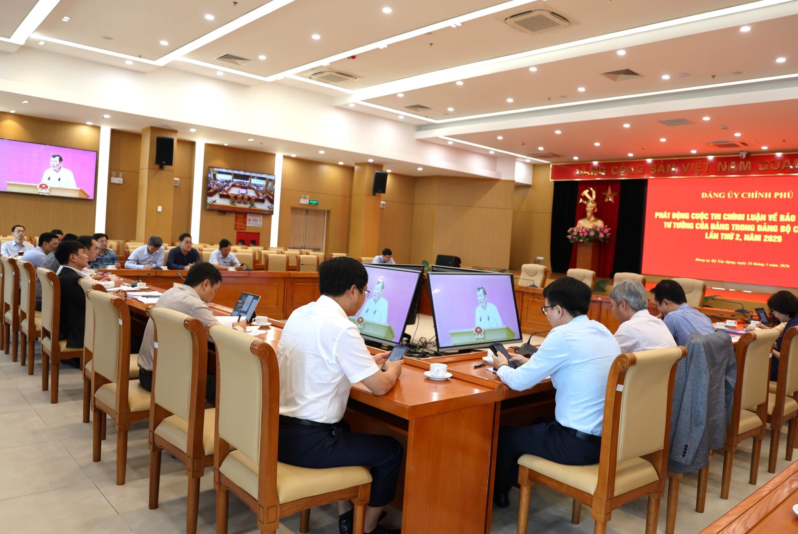 Tại Hội nghị, đồng chí Nguyễn Đức Phong, Phó Bí thư Đảng ủy Chính phủ, Thành viên Ban Chỉ đạo 35 Trung ương đã chính thức phát động "Cuộc thi chính luận về bảo vệ nền tảng tư tưởng của Đảng lần thứ 2, năm 2026 trong Đảng bộ Chính phủ".
