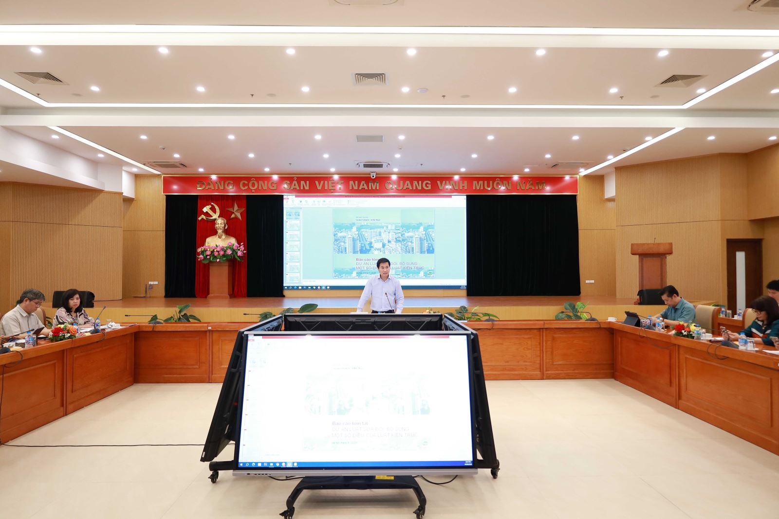 Ngày 23/4/2026, tại Hà Nội, Thứ trưởng Nguyễn Tường Văn - Tổ tưởng Tổ soạn thảo chủ trì cuộc họp Tổ soạn thảo Luật Sửa đổi, bổ sung một số điều của Luật Kiến trúc năm 2019. Dự cuộc họp có thành viên Tổ soạn thảo gồm: đại diện lãnh đạo Sở Quy hoạch kiến trúc các Thành phố trực thuộc Trung ương, lãnh đạo các đơn vị thuộc Bộ Xây dựng, chuyên gia các hội, hiệp hội nghề nghiệp chuyên ngành.