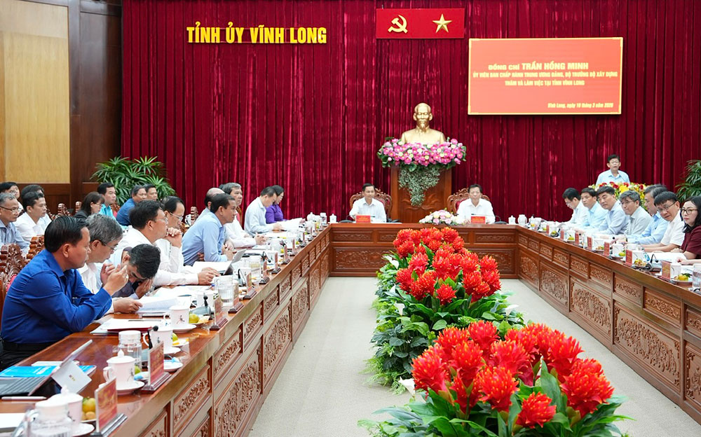 Tại buổi làm việc, Lãnh đạo tỉnh Vĩnh Long báo cáo tóm tắt tình hình, kết quả thực hiện công tác quản lý nhà nước về xây dựng trên địa bàn tỉnh sau hợp nhất; trong đó thông tin chi tiết về hệ thống hạ tầng giao thông đường bộ, đường thủy; công tác quản lý quy hoạch, kiến trúc và phát triển đô thị; công tác quản lý đầu tư xây dựng; quản lý nhà ở và thị trường bất động sản trên địa bàn.