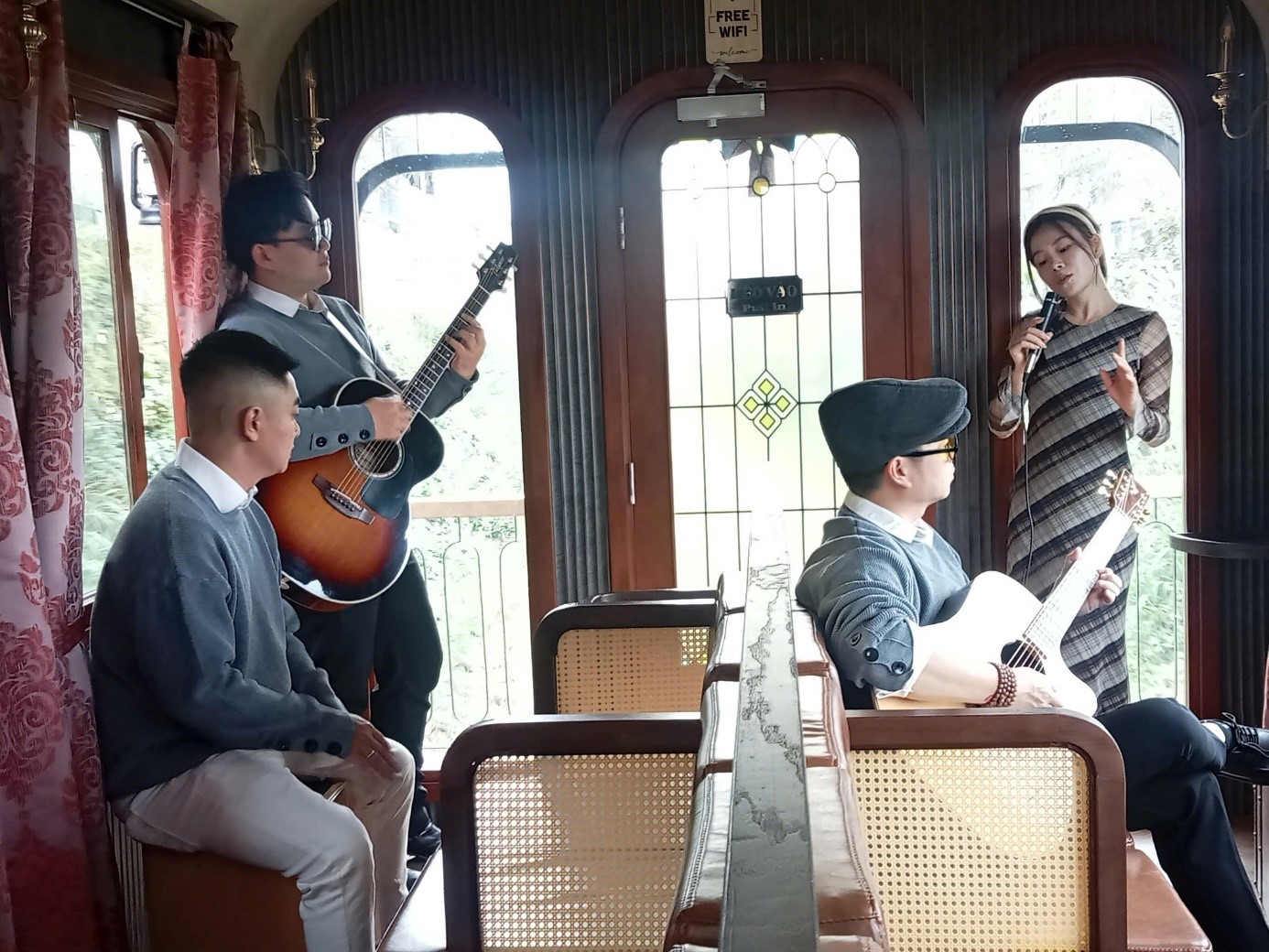 Tàu cổ Đà Lạt giảm giá vé, khách tham quan được thưởng thức âm nhạc trên tàu (Ảnh minh họa: Internet)