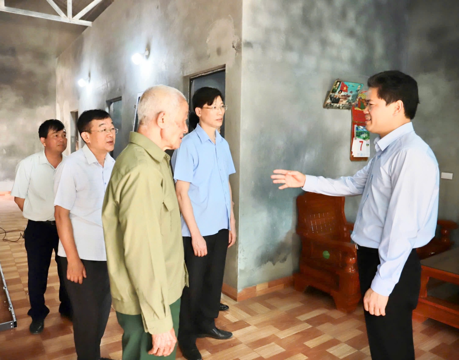 Đồng chí Vũ Mạnh Hà - Phó Bí thư Thường trực Tỉnh ủy, Phó Trưởng Ban Chỉ đạo cùng các đồng chí lãnh đạo huyện, xã thăm hỏi, động viên các hộ gia đình thuộc diện hỗ trợ nhà ở đẩy nhanh tiến độ xây dựng. Đặc biệt, đối với những hộ chưa khởi công, lãnh đạo huyện, xã cần phối hợp chặt chẽ với các hộ gia đình để bàn bạc và tiến hành khởi công khẩn trương để hoàn thành tiến độ xây dựng. Đồng thời, đồng chí Phó Bí thư Thường trực Tỉnh ủy cũng yêu cầu lãnh đạo huyện, xã định hướng, tư vấn cho các hộ được hỗ trợ nhà ở xây dựng nhà kiên cố nhưng cũng cần phải xây dựng bếp, nhà vệ sinh để đáp ứng nhu cầu sử dụng của người dân, cùng với đó chú trọng xây chuồng trại xa nhà ở, đảm bảo vệ sinh môi trường. Đối với các hộ đã khởi công, cần đẩy nhanh tiến độ xây dựng để hoàn thành xong trước ngày 20/6.