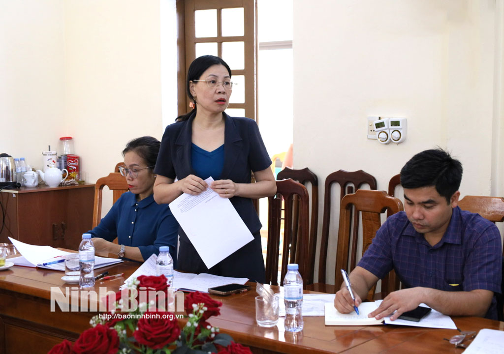 Lãnh đạo phường Đồng Văn báo cáo công tác giải phóng mặt bằng dự án xây dựng đường sắt tốc độ cao.