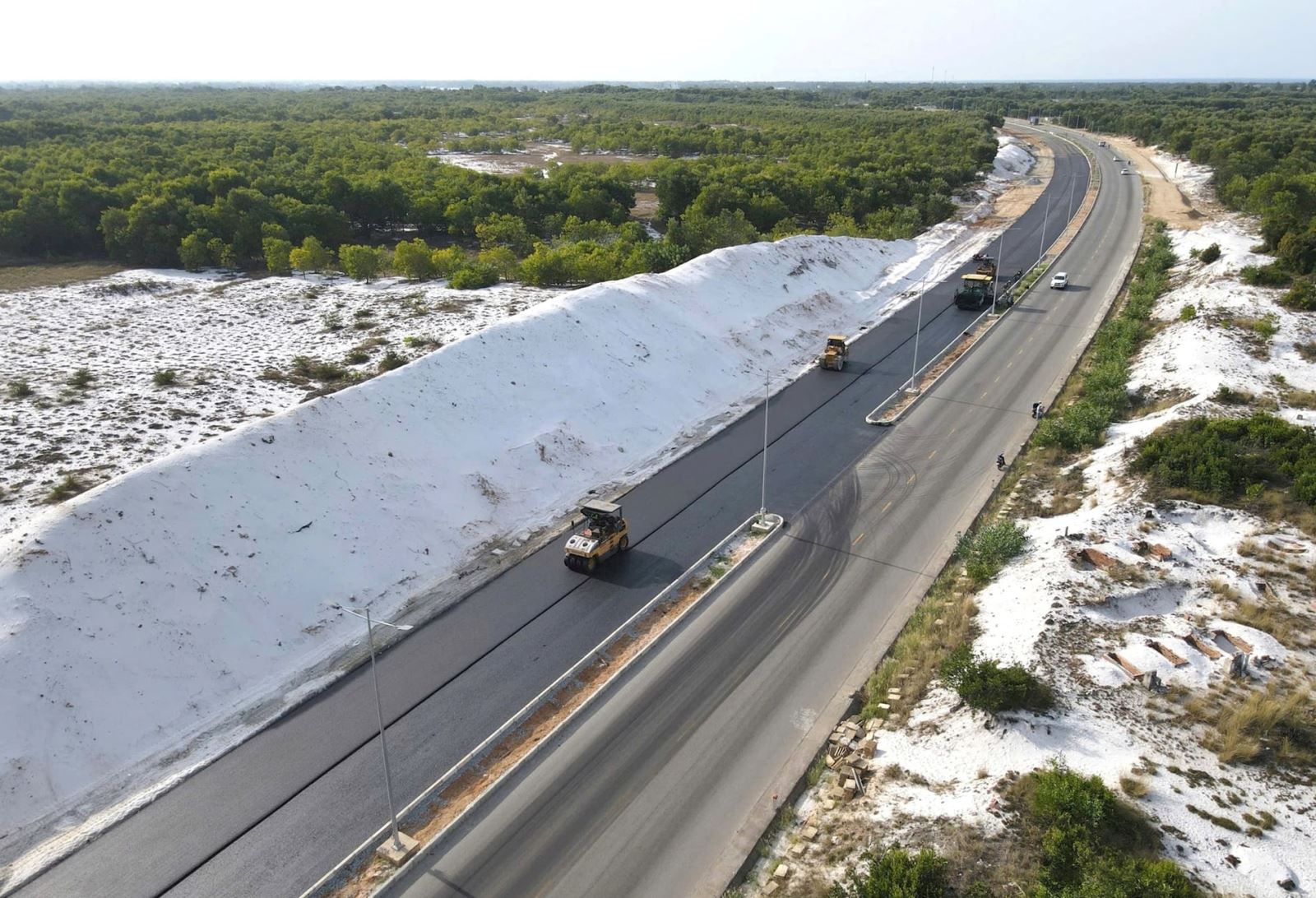 Về phần tuyến, các liên danh nhà thầu đang triển khai thi công nền, mặt đường các đoạn dài 22,4/26,5km đã bàn giao mặt bằng. Thảm bê tông nhựa được 11,4/20,7km (trừ đoạn 5,8km qua Khu công nghiệp Tam Hiệp, vịnh An Hòa đã hoàn thiện giai đoạn 1 trước đây). Hoàn thành 42/68 cống các loại; lắp đặt dải phân cách được 21.970/38.437m.