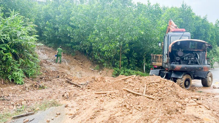 Các đơn vị tiến hành biện pháp để dọn khối lượng đất, đá sạt xuống mặt đường để bảo đảm giao thông