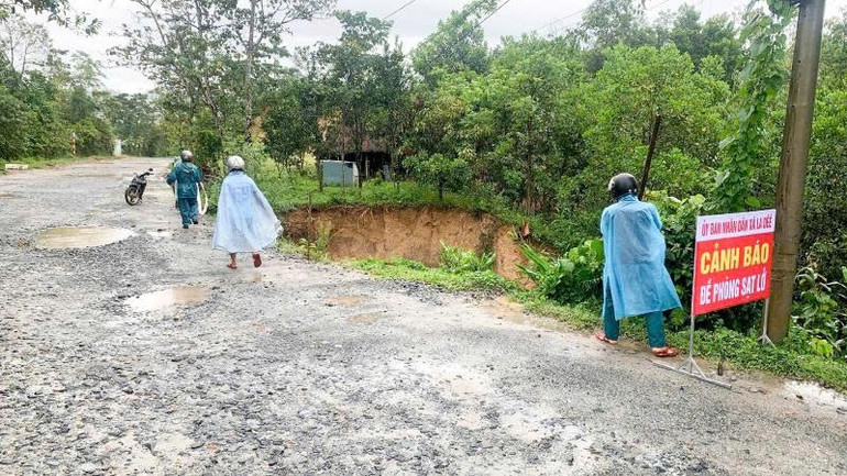 Ngoài ra, mưa lớn kéo dài trong nhiều ngày qua đã làm sạt lở nghiêm trọng trên tuyến Quốc lộ 14D đoạn qua thôn Đắc Rế, xã biên giới La Dêê. Để bảo đảm an toàn, Ban Chỉ huy Phòng thủ dân sự xã đã cho lực lượng làm biển cảnh báo và rào khu vực, thông báo đến người và phương tiện được biết khi lưu thông qua khu vực trên.
