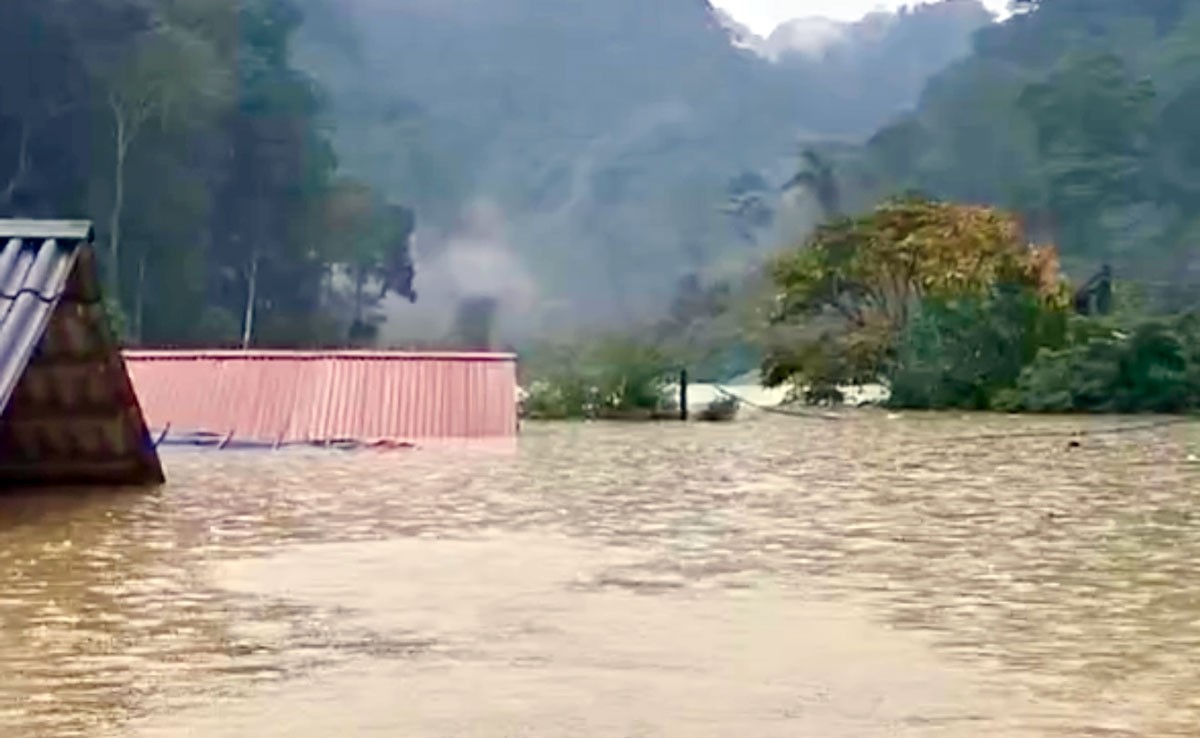Thôn Lủng Siên bị nước lũ bao phủ, điểm trường Mầm non ngập quá nóc, mất điện và sóng điện thoại suốt nhiều ngày.