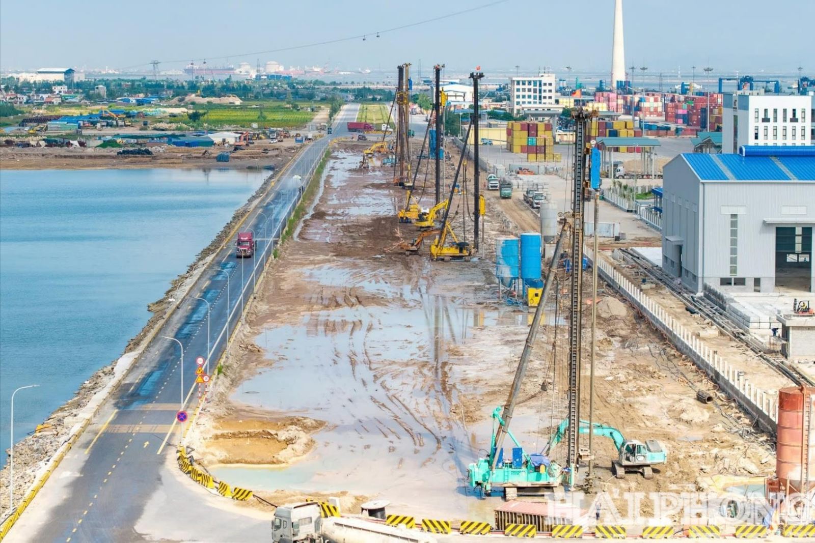 Sáng trung tuần tháng 10, khi lớp sương mỏng còn vương trên bãi cỏ ven đường từ cầu Tân Vũ - Lạch Huyện đến bến cảng, công trường dự án xây dựng tuyến đường sau bến cảng số 3 đến bến số 6 (khu bến cảng Lạch Huyện) đã rộn ràng tiếng còi từ xe chở vật liệu, tiếng máy khoan cọc.