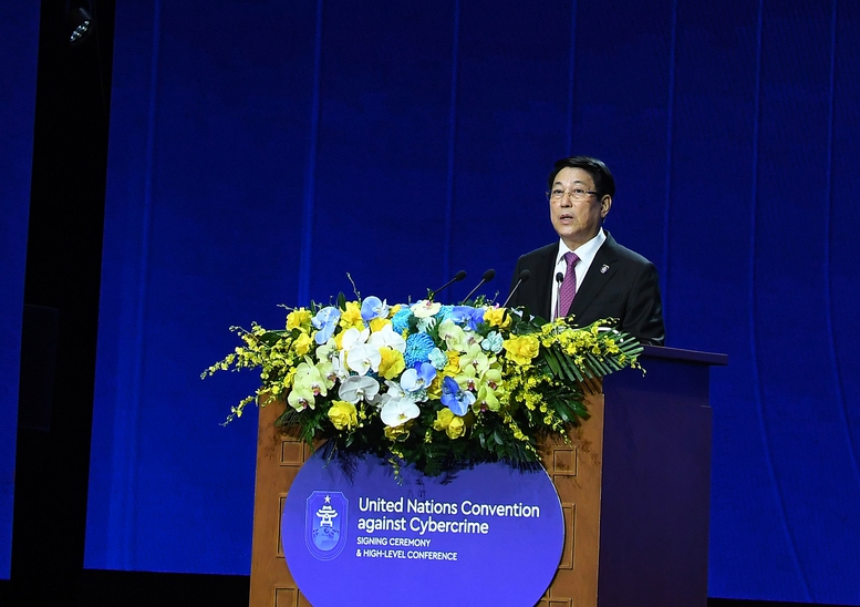 Phát biểu tại Lễ mở ký, thay mặt cho Nhà nước và Nhân dân Việt Nam, Chủ tịch nước Lương Cường nhiệt liệt chào mừng các đại biểu đến với Thủ đô Hà Nội - Thành phố vì Hòa bình, để tham dự Lễ mở ký Công ước Liên hợp quốc về chống tội phạm mạng - một sự kiện mang ý nghĩa lịch sử, khởi đầu cho kỷ nguyên hợp tác toàn cầu về không gian mạng.