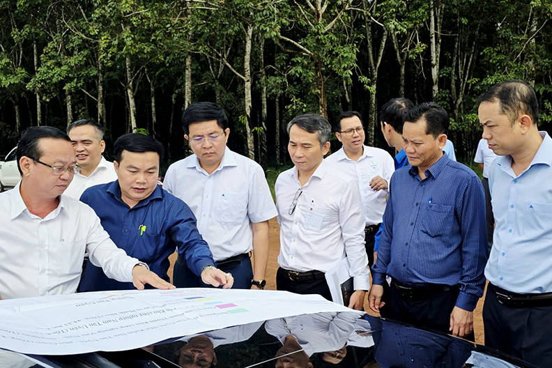 Đoàn công tác đã khảo sát thực tế công tác thu hồi đất để thực hiện giải phóng mặt bằng (GPMB) Dự án đường Vành đai 4 TP. Hồ Chí Minh, đoạn qua địa bàn phường Bình Cơ.