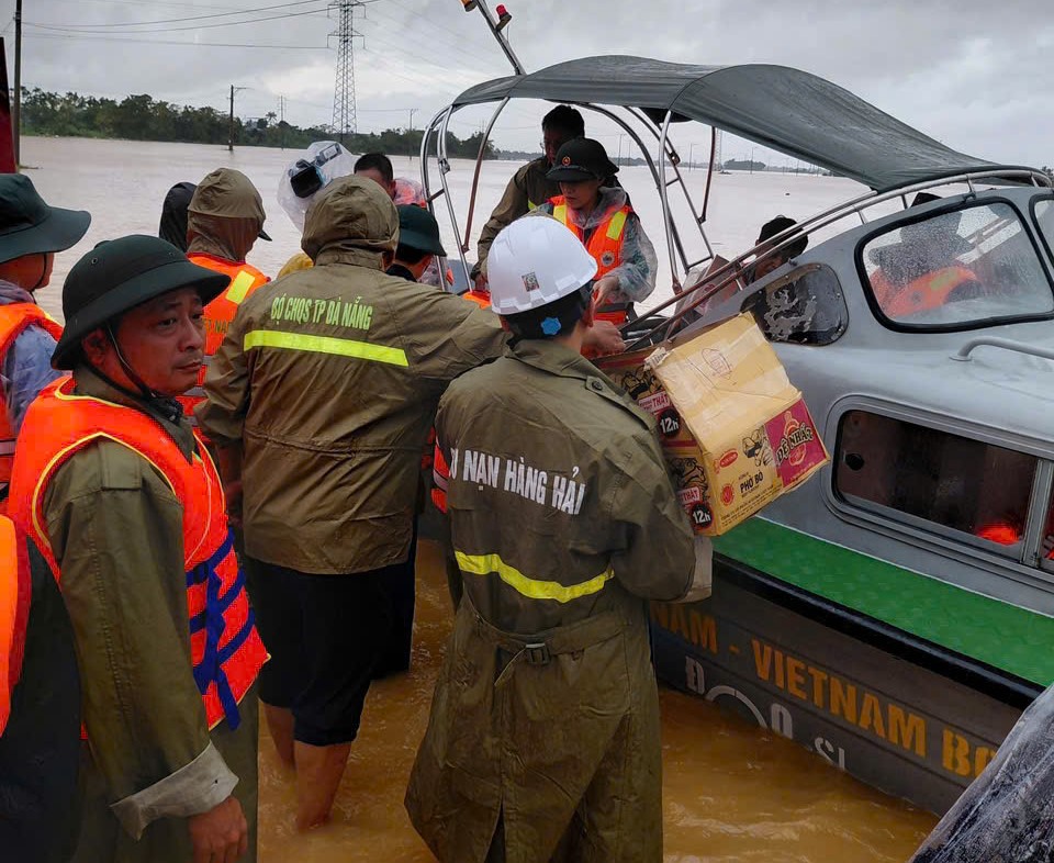 Theo chỉ đạo của Cục trưởng Cục Hàng hải và Đường thủy Việt Nam Lê Đỗ Mười, Trung tâm Phối hợp TKCN hàng hải Việt Nam đã xuất kho hàng dự trữ quốc gia và tổ chức vận chuyển nhu yếu phẩm, trang thiết bị cứu sinh vào vùng tâm lũ tại xã Đại Lộc, TP. Đà Nẵng, đồng thời tổ chức các tổ đội cứu nạn di chuyển vào sâu những vùng có mực nước lũ cao để phối hợp và hỗ trợ lực lượng địa phương trong việc ứng cứu và sơ tán nhân dân đang trong tình trạng bị cô lập. Lực lượng tìm kiếm cứu nạn hàng hải duy trì nhân sự triển khai túc trực ngày đêm, sát cánh, hỗ trợ nhân dân vùng ngập lụt, đảm bảo an toàn tài sản và tính mạng cho nhân dân.
