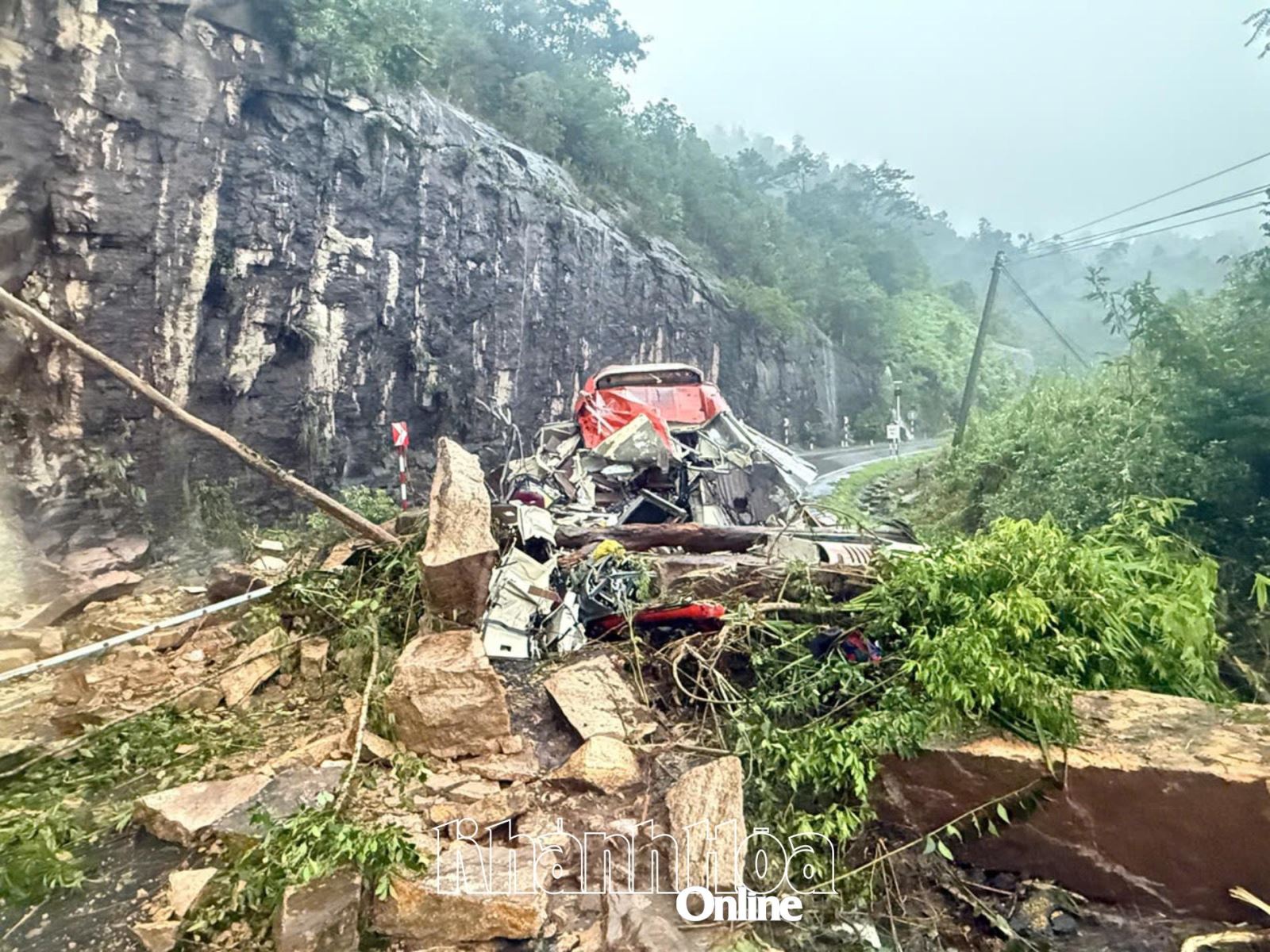 Hiện trường vụ sạt lở trúng xe khách khiến 6 người tử nạn, 19 người bị thương trên đèo Khánh Lê