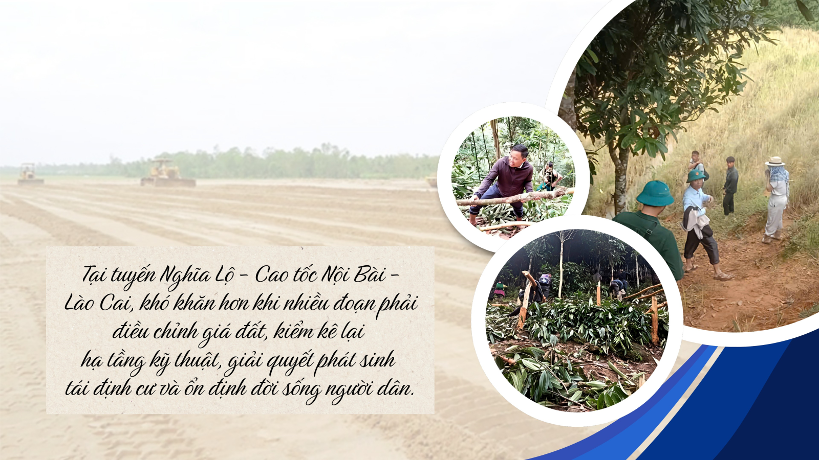 Tại tuyến Nghĩa Lộ - Cao tốc Nội Bài - Lào Cai, khó khăn hơn khi nhiều đoạn phải điều chỉnh giá đất, kiểm kê lại hạ tầng kỹ thuật, giải quyết phát sinh tái định cư và ổn định đời sống người dân. Hiện, còn khoảng 63 hồ sơ chưa phê duyệt phương án bồi thường, bao gồm các trường hợp liên quan đến hành lang an toàn lưới điện, đất chưa đủ thủ tục pháp lý hoặc bị ảnh hưởng ngoài diện tích thu hồi.