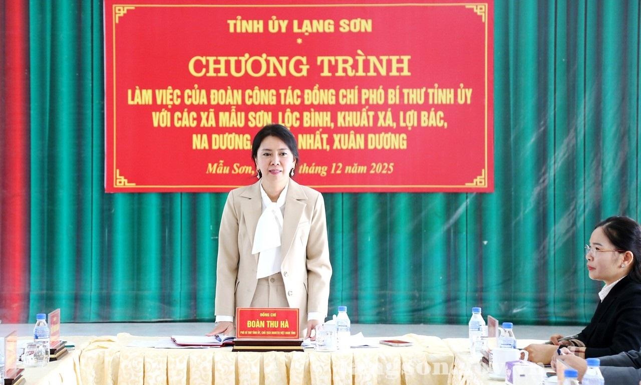 Đồng chí Đoàn Thu Hà, Phó Bí thư Tỉnh ủy, Chủ tịch Ủy ban Mặt trận Tổ quốc Việt Nam tỉnh Lạng Sơn phát biểu kết luận buổi làm việc