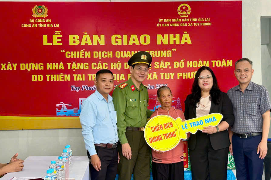 Công an tỉnh và chính quyền xã Tuy Phước bàn giao nhà cho người dân