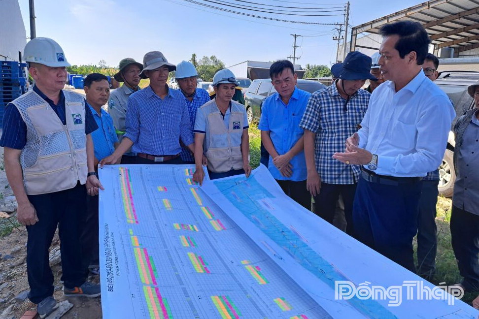 Phó Chủ tịch UBND tỉnh Đồng Tháp Nguyễn Thành Diệu cùng các sở, ngành liên quan khảo sát, kiểm tra tình hình thực hiện Dự án Xây dựng tuyến đường tỉnh 857.