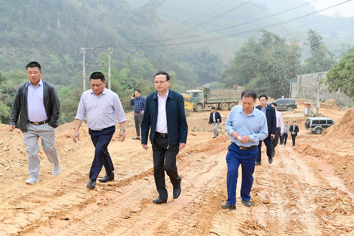 Đồng chí Nguyễn Mạnh Tuấn, Phó Chủ tịch Thường trực UBND tỉnh kiểm tra tiến độ thực hiện Khu tái định cư dự án đường Hồ Chí Minh đoạn qua xã Hùng Lợi.