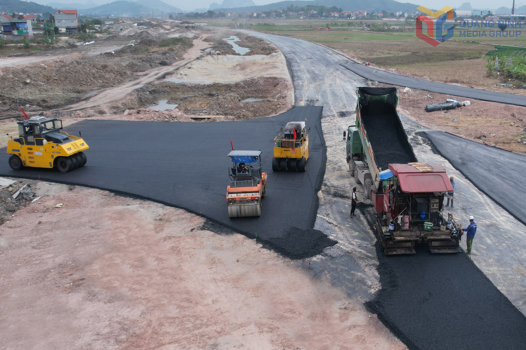Tại những vị trí đã đảm bảo điều kiện thi công lớp mặt đường, các nhà thầu đã đồng loạt ra quân, tổ chức thi công với mục tiêu đẩy nhanh tiến độ hoàn thành dự án.