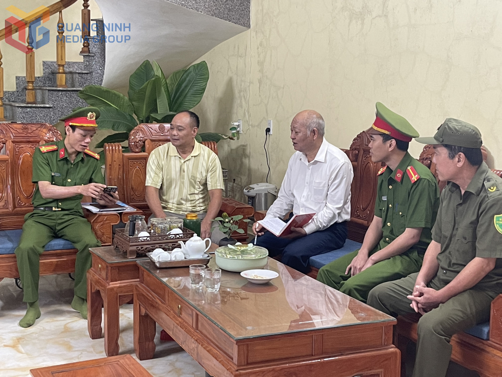 Công an xã Ba Chẽ đến nhà người dân tuyên truyền Luật Trật tự, ATGT, từ đó có thể giáo dục, nhắc nhở con em mình tham gia giao thông an toàn hơn.