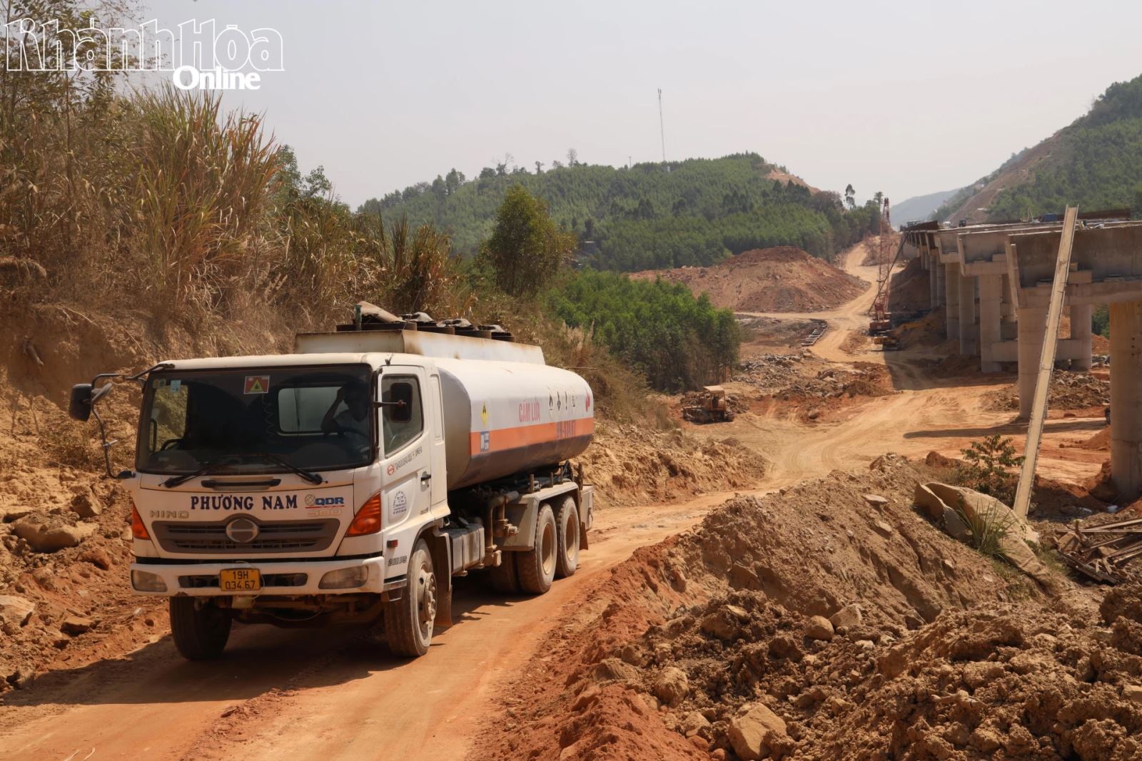 Xe chở dầu vẫn miệt mài vận chuyển phục vụ công trình