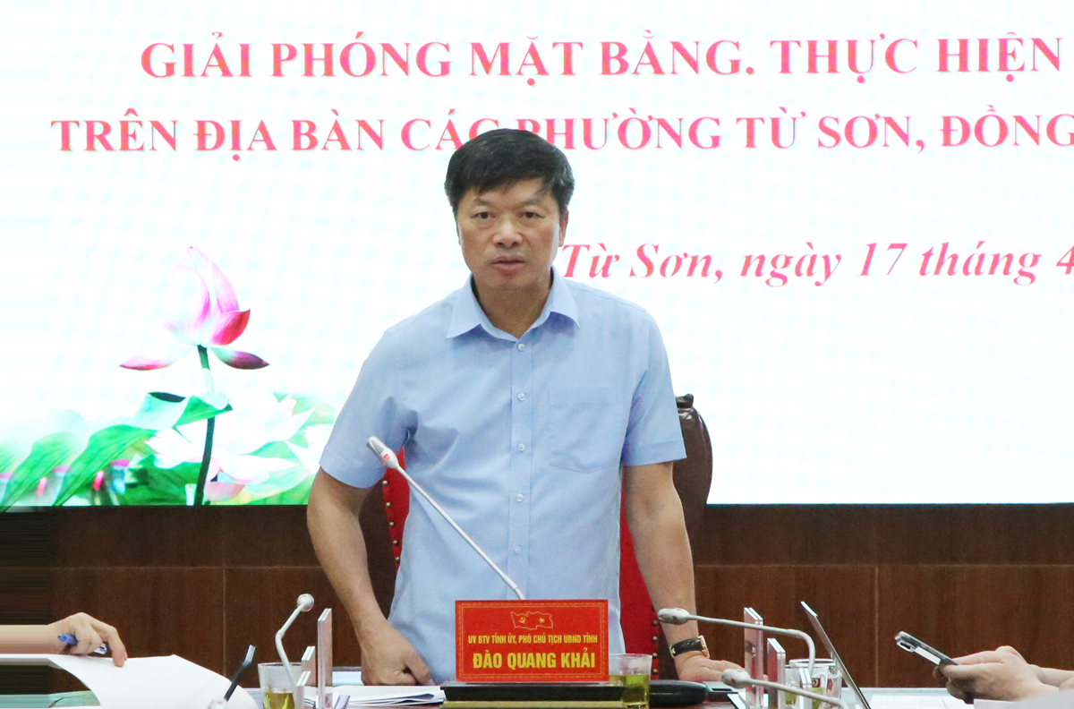 Phó Chủ tịch UBND tỉnh Bắc Ninh Đào Quang Khải vừa chủ trì Hội nghị đôn đốc tiến độ triển khai công tác bồi thường, giải phóng mặt bằng (GPMB) thực hiện các dự án khu đô thị trên địa bàn các phường: Từ Sơn, Phù Khê, Đồng Nguyên, Tam Sơn.