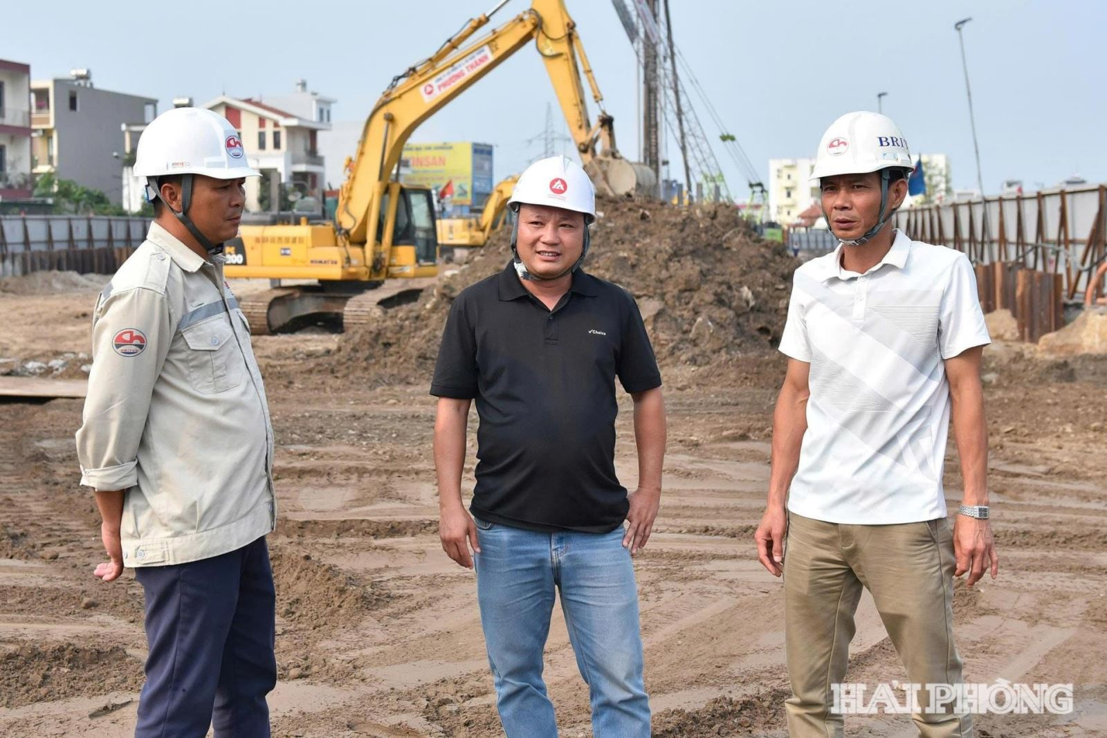 Công trường thi công Dự án nút giao thông khác mức đường Bùi Viện - Lê Hồng Phong những ngày cuối tháng 4 duy trì nhịp thi công khẩn trương. Xe ben chở vật liệu ra vào liên tục, các dàn khoan cọc xi măng đất vận hành hết công suất, công nhân chia ca để tận dụng thời tiết thuận lợi.