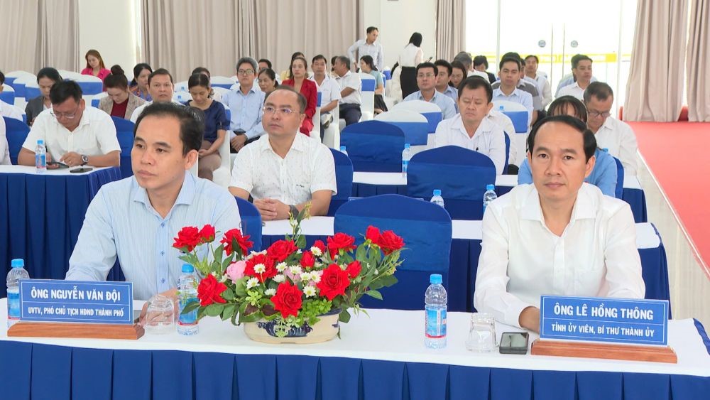 Lãnh đạo thành phố và các cơ quan, đơn vị, xã, phường tham dự lễ phát động