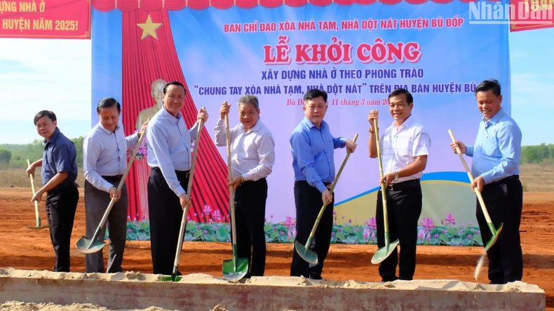Thực hiện Chương trình xóa nhà tạm, nhà dột nát, tỉnh Bình Phước triển khai xây dựng, sửa chữa 765 căn nhà cho hộ nghèo, hộ cận nghèo và gia đình chính sách. Tính đến trung tuần tháng 4/2025, Bình Phước đã hoàn thành trên 620 căn nhà và phấn đấu hoàn thành chương trình xóa nhà tạm, nhà dột nát trước ngày 30/4 để chào mừng kỷ niệm 50 năm Ngày Giải phóng miền nam, thống nhất đất nước.