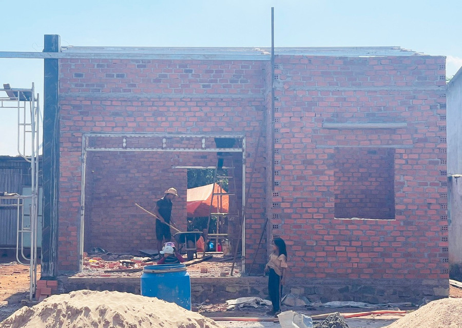 Ngôi nhà của gia đình anh Kluynh đang dần hoàn thiện trong niềm vui mừng của các thành viên