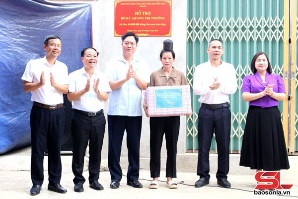 Trước đó, các đại biểu đã đến dự lễ khánh thành và bàn giao nhà cho gia đình bà Quàng Thị Thưởng, bản Cà Cại, xã Phổng Ly, huyện Thuận Châu.