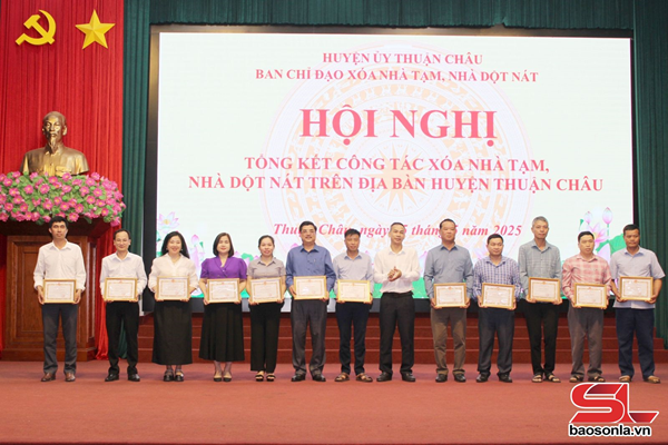 Nhân dịp này, UBND huyện Thuận Châu tặng giấy khen cho 36 tập thể, 76 cá nhân có thành tích trong phong trào thi đua “Chung tay xóa nhà tạm, nhà dột nát trên địa bàn huyện năm 2025”.