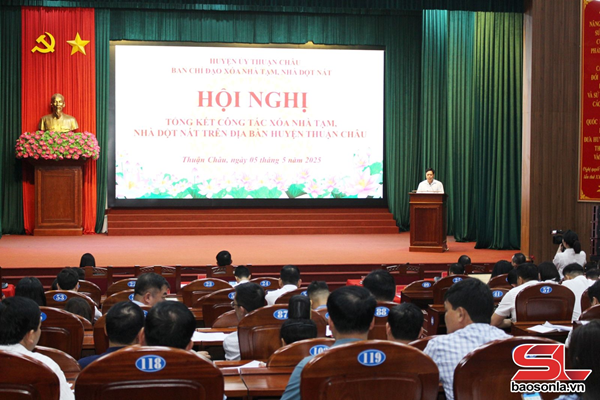 Phát biểu tại hội nghị, đồng chí Lò Minh Hùng - Phó Bí thư Thường trực Tỉnh ủy Sơn La đánh giá cao những kết quả đạt được của huyện Thuận Châu trong công tác xóa nhà tạm, nhà dột nát. Đồng chí đề nghị cấp ủy, chính quyền, Mặt trận Tổ quốc và các tổ chức chính trị xã hội huyện Thuận Châu tiếp tục triển khai đồng bộ, hiệu quả các chủ trương, chính sách về giảm nghèo bền vững, nhất là chương trình, đề án, dự án hỗ trợ nhà ở cho hộ nghèo, hộ cận nghèo, đồng bào dân tộc thiểu số và miền núi. Nghiên cứu xây dựng các mô hình phát triển kinh tế, tạo sinh kế, giải quyết việc làm từ các chương trình, dự án, góp phần nâng cao đời sống nhân dân. Nhân rộng cách làm hay, hiệu quả trong xóa nhà tạm, nhà dột nát; biểu dương, khen thưởng những tập thể, cá nhân tích cực tham gia hỗ trợ, giúp đỡ hộ nghèo về nhà ở, những hộ nghèo có ý chí, tự lực vươn lên thoát nghèo, giảm nghèo bền vững.