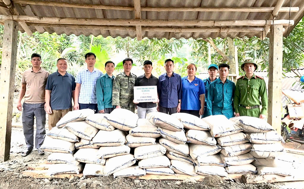Cán bộ công chức, viên chức xã Lâm Giang (Văn Yên) góp kinh phí tặng 2 tấn xi măng giúp hộ nghèo trong xã xóa nhà tạm, nhà dột nát