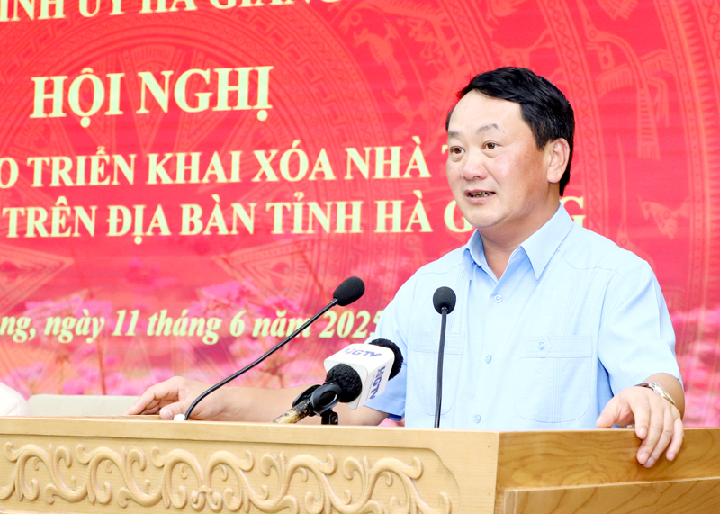 Nhấn mạnh, hiện trên địa bàn tỉnh Hà Giang vẫn còn số lượng nhà tạm, nhà dột nát cần xóa thuộc chương trình MTQG còn rất lớn, Bí thư Tỉnh ủy đề nghị các cấp, các ngành, các địa phương cần quán triệt, triển khai thực hiện nghiêm túc, đầy đủ các văn bản chỉ đạo, hướng dẫn của Trung ương, của tỉnh theo chức năng, nhiệm vụ được giao trên tinh thần đến từng hộ gia đình, những việc gì chưa làm thì triển khai làm cho hết. Đồng thời chấp hành nghiêm túc chỉ đạo theo Công điện của Thủ tướng Chính phủ theo phương châm, mục tiêu và thời gian. Phương châm là “6 rõ, 4 thật” là: Rõ người, rõ việc, rõ trách nhiệm, rõ thẩm quyền, rõ thời gian, rõ kết quả; nói thật, làm thật, hiệu quả thật, người dân thụ hưởng thật.