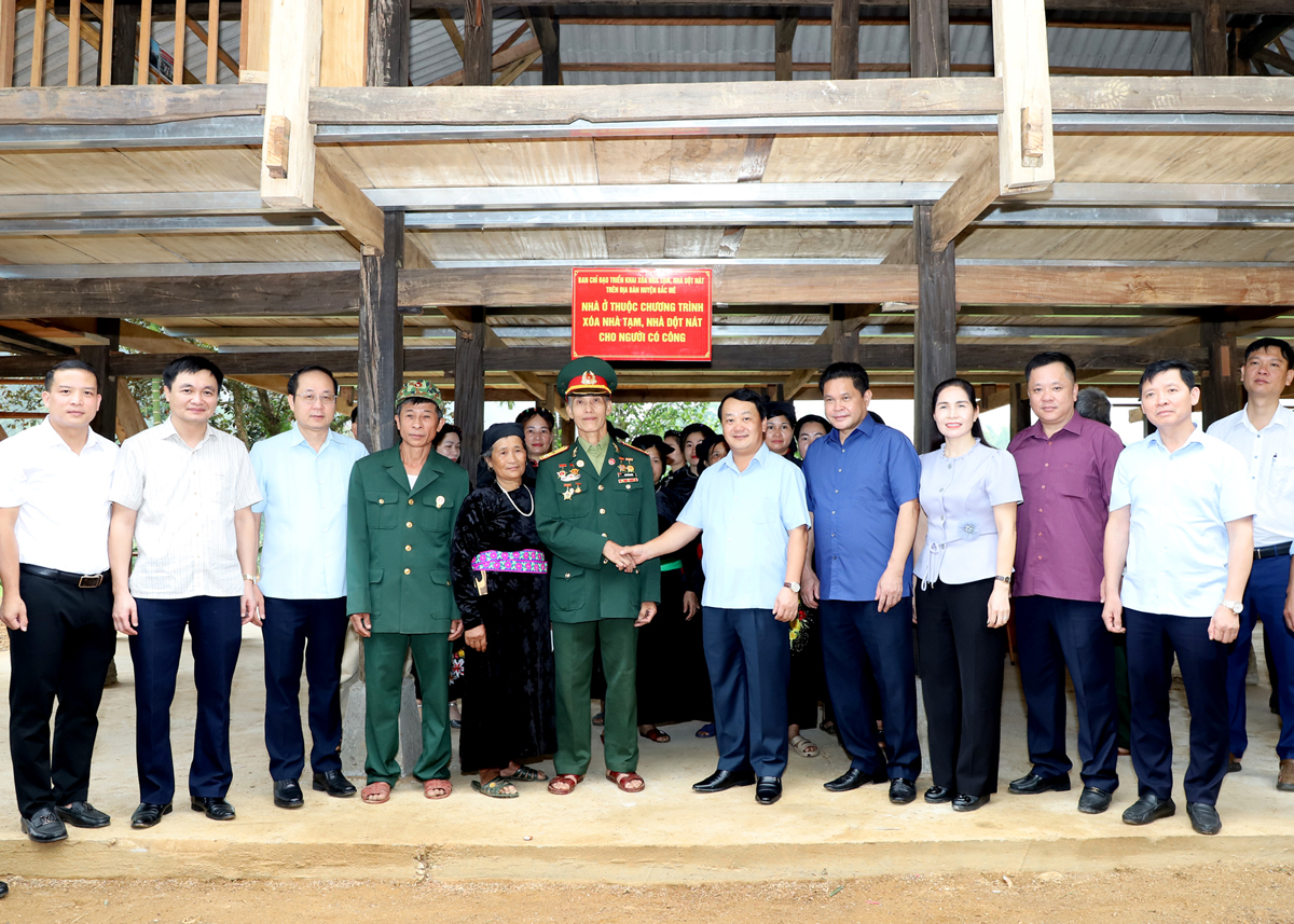 Bí thư Tỉnh ủy Hầu A Lềnh dự khánh thành nhà mới và chúc mừng ông Mai Trung Liên, thương binh hạng 4/4, trú tại thôn Nà Han, xã Yên Định (Bắc Mê).