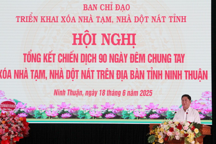 Qua 2 tháng triển khai thực hiện cuộc phát động Chiến dịch 90 ngày đêm chung tay xóa nhà tạm, nhà dột nát trên địa bàn tỉnh Ninh Thuận, với sự vào cuộc quyết liệt của cả hệ thống chính trị và sự hưởng ứng mạnh mẽ của toàn xã hội, toàn tỉnh đã hoàn thành xây dựng và sửa chữa 2.183 căn nhà cho người có công với cách mạng, hộ nghèo, hộ cận nghèo (xây mới 1.526 nhà, sửa chữa 657 nhà), vượt tiến độ trước 1 tháng so với kế hoạch đề ra và trước 5 tháng so với kế hoạch của Chính phủ.