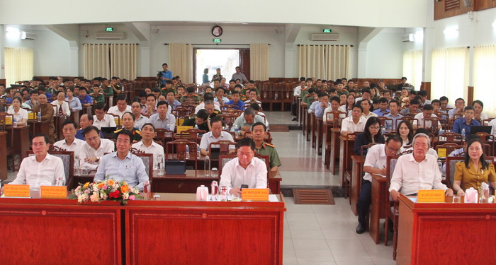 Phó Bí thư Thường trực Tỉnh ủy, Chủ tịch HĐND tỉnh Phạm Văn Hậu và Chủ tịch UBND tỉnh Trần Quốc Nam tặng Bằng khen và tặng hoa chúc mừng cho các tập thể và cá nhân