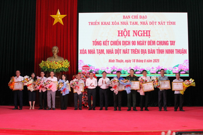 Dịp này, Chủ tịch UBND tỉnh Ninh Thuận đã tặng bằng khen cho 25 tập thể và 19 cá nhân có thành tích xuất sắc trong việc triển khai thực hiện Chương trình xóa nhà tạm, nhà dột nát trên địa bàn.