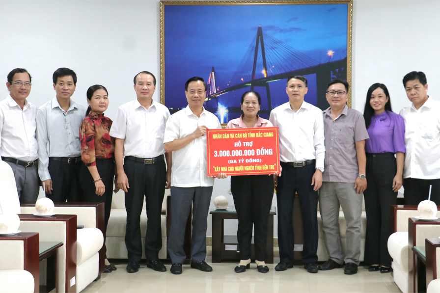 Vừa qua, Đoàn công tác Ủy ban MTTQ Việt Nam tỉnh Bắc Giang do Chủ tịch Ủy ban MTTQ Việt Nam tỉnh Bắc Giang Đinh Đức Cảnh làm Trưởng đoàn đã đến Bến Tre thăm và trao kinh phí hỗ trợ xây dựng nhà đại đoàn kết, nhằm chung tay thực hiện chương trình xóa nhà tạm, nhà dột nát cho người dân Bến Tre. Tiếp đoàn có Phó Chủ tịch Ủy ban MTTQ Việt Nam tỉnh Bến Tre Đặng Thị Phượng; Phó Giám đốc Sở Xây dựng Trần Văn Trưng.