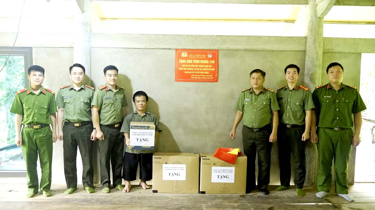 Niềm vui lan tỏa với gia đình ông Hoàng Xuân Nhị, thôn Nậm Khương, xã Nà Chì. Mới đầu năm nay, gia đình ông đang sống trong ngôi nhà bị xuống cấp nghiêm trọng. Do điều kiện kinh tế khó khăn nên việc sửa chữa hoặc xây mới một căn nhà kiên cố là điều quá khó đối với gia đình. Trong khi đó, ông Nhị là người bị nhiễm chất độc hóa học trong kháng chiến chống Mỹ, tỷ lệ thương tật lên tới 81%. Sau khi nắm được tình hình và hoàn cảnh gia đình, ngày 30/4 vừa qua, Công an tỉnh đã vận động cán bộ, chiến sỹ trong toàn lực lượng đóng góp kinh phí hỗ trợ gia đình xây dựng ngôi nhà mới. Ngoài sự hỗ trợ ngày công của cán bộ, chiến sỹ Công an, đoàn viên, thanh niên và Nhân dân địa phương, Công an tỉnh còn trích kinh phí 80 triệu đồng để hỗ trợ trực tiếp cho gia đình. Sau gần 2 tháng xây dựng, đến nay ngôi nhà sàn có diện tích 85m2 được hoàn thành trong niềm vui của gia đình và đơn vị tài trợ. Ông Hoàng Xuân Nhị xúc động: Hoàn cảnh gia đình khó khăn, tôi thì “nay bệnh, mai ốm”, không làm gì được. Bây giờ có nhà mới khang trang thật sự rất hạnh phúc.