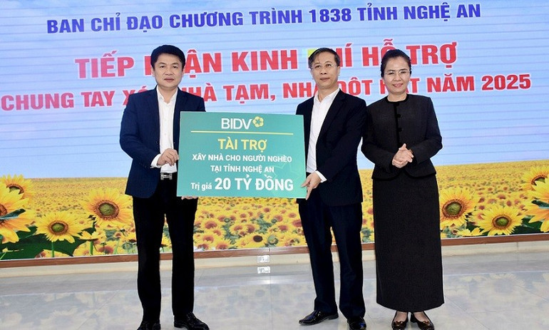 Ngân hàng BIDV chi nhánh Nghệ An trao bảng tài trợ xây nhà cho người nghèo tỉnh Nghệ An