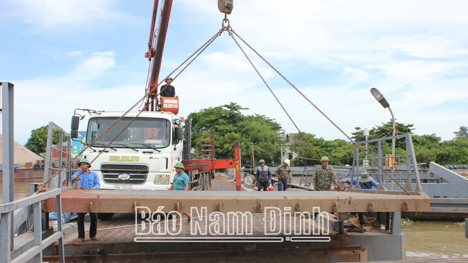 Sửa chữa cầu phao Ninh Cường đảm bảo vận hành an toàn trong mùa mưa bão năm nay.