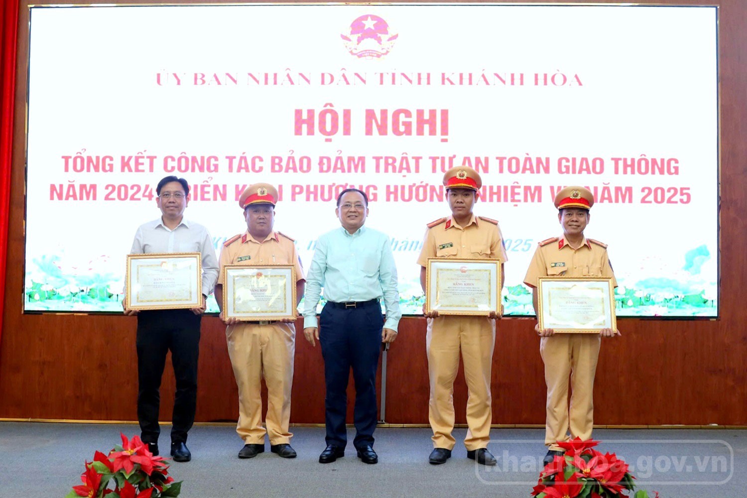 Nhân dịp này, UBND tỉnh Khánh Hòa đã tặng bằng khen cho 4 tập thể và 5 cá nhân có thành tích xuất sắc trong công tác bảo đảm trật tự ATGT trên địa bàn tỉnh Khánh Hòa năm 2024.