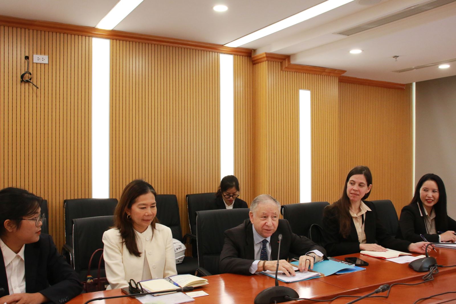 Phó Chủ tịch chuyên trách Ủy ban ATGT Quốc gia Lê Kim Thành (thứ hai từ trái sang) chủ trì buổi tiếp và làm việc với ông Jean Todt, Đặc phái viên của Tổng thư ký Liên hợp quốc về ATGT đường bộ
