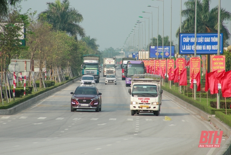 Các phương tiện lưu thông trên Đại lộ Nguyễn Hoàng (TP Thanh Hóa)