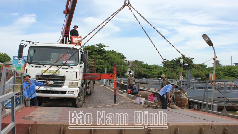 Sửa chữa cầu phao Ninh Cường đảm bảo vận hành an toàn trong mùa mưa bão.