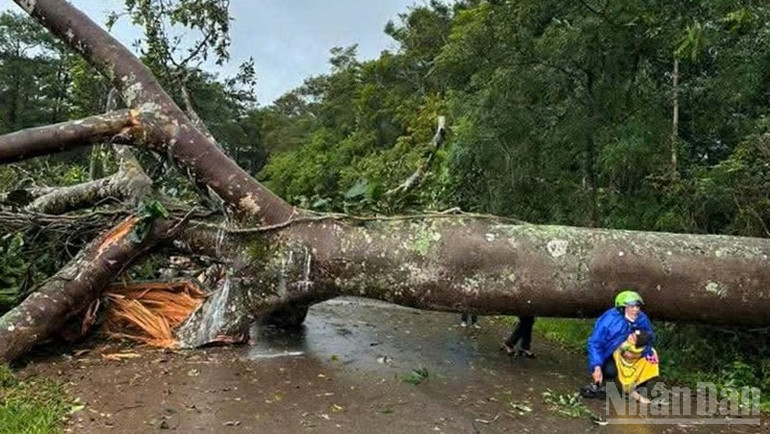 Cây xanh ngã đổ chắn ngang đường giao thông trên địa bàn xã Bảo Lâm 3, tỉnh Lâm Đồng
