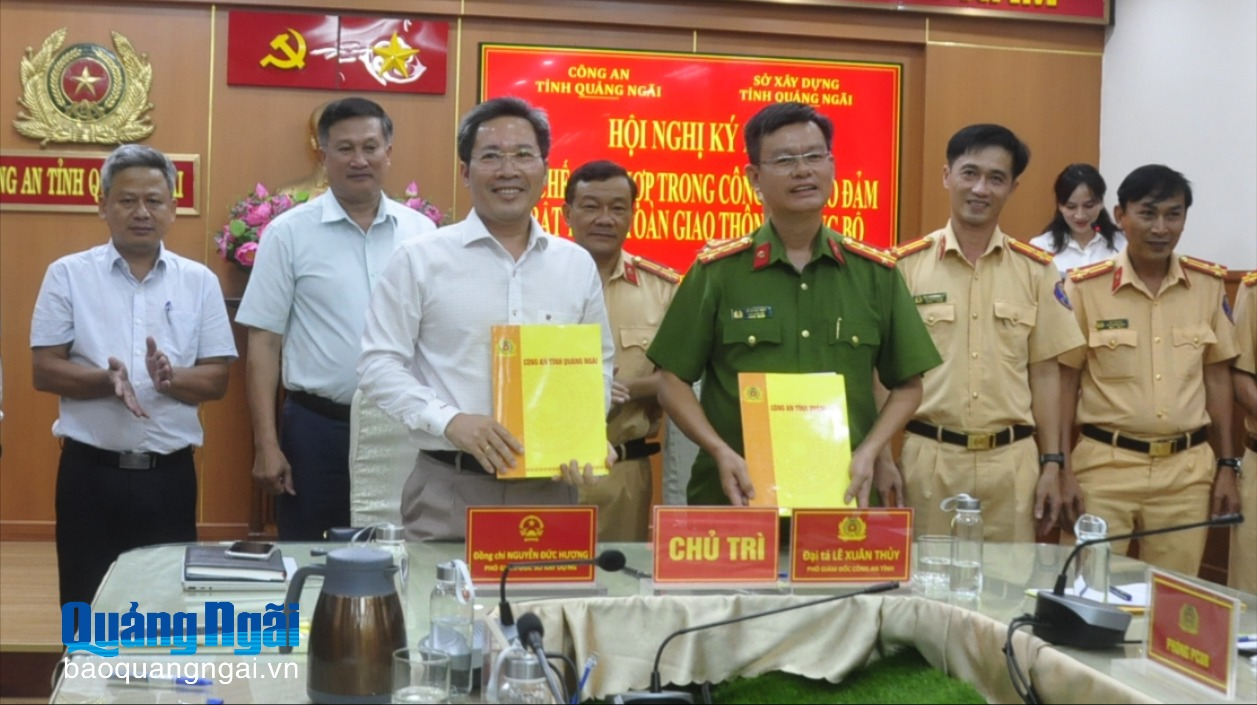 Sở Xây dựng và Công an tỉnh Quảng Ngãi vừa tổ chức Hội nghị ký kết Quy chế phối hợp trong công tác bảo đảm trật tự an toàn giao thông (TTATGT) đường bộ. Đại tá Lê Xuân Thủy - Phó Giám đốc Công an tỉnh và Phó Giám đốc Sở Xây dựng Quảng Ngãi Nguyễn Đức Hương đồng chủ trì hội nghị.