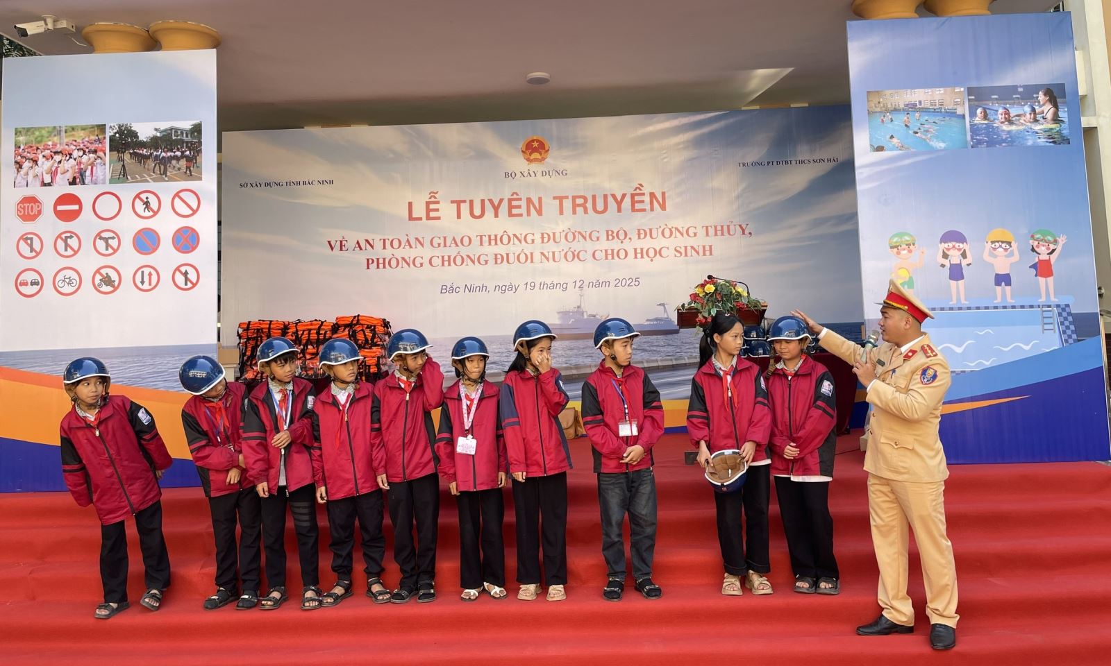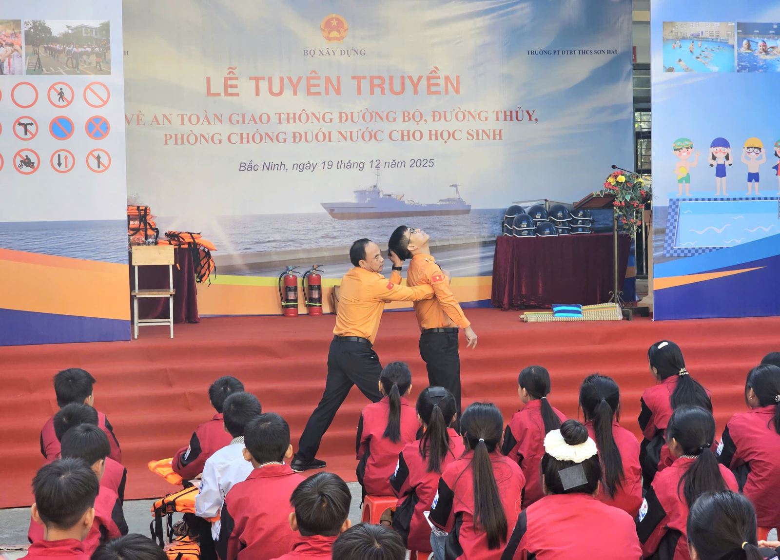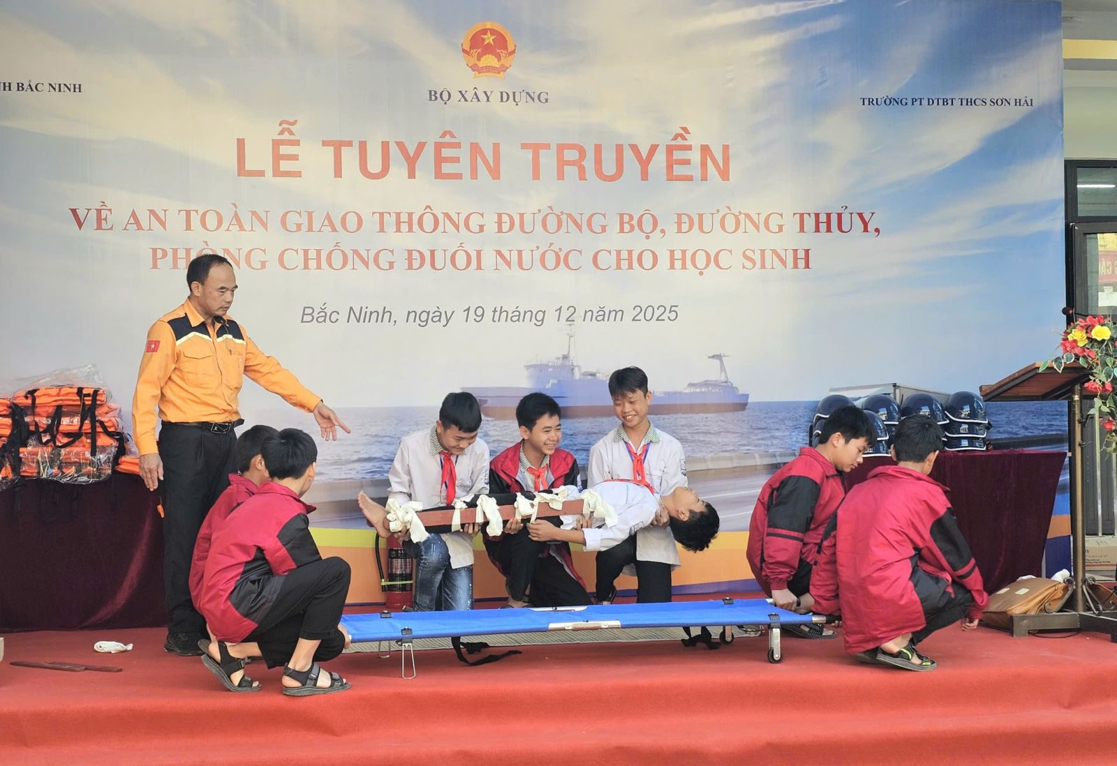 Thực hiện kế hoạch đảm bảo an toàn giao thông năm 2025, ngày 19/12, Bộ Xây dựng phối hợp cùng Sở Xây dựng tỉnh Bắc Ninh, UBND xã Sơn Hải, Trung tâm Phối hợp tìm kiếm cứu nạn hàng hải Việt Nam và trường Phổ thông dân tộc bán trú THCS Sơn Hải tổ chức Lễ tuyên truyền, phổ biến pháp luật vể an toàn giao thông đường bộ, đường thủy, phòng chống đuối nước khi tham gia giao thông cho học sinh tại tỉnh Bắc Ninh.