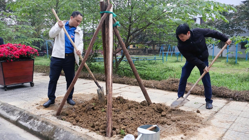 Trồng cây xanh ngay sau lễ ra quân ở phường Kim Long, TP. Huế